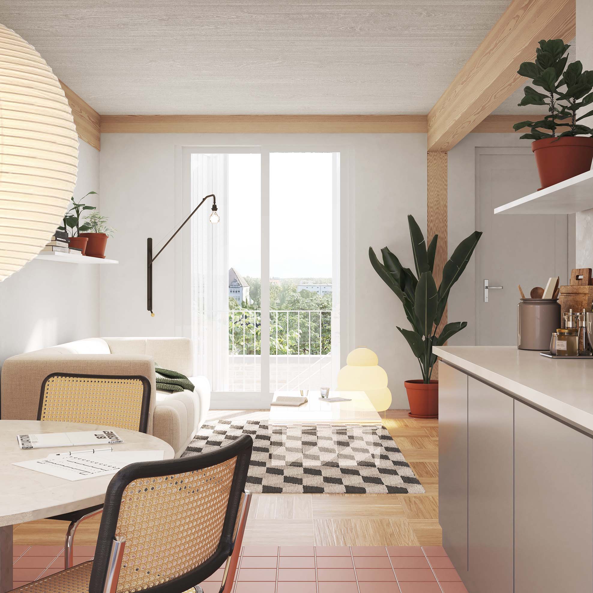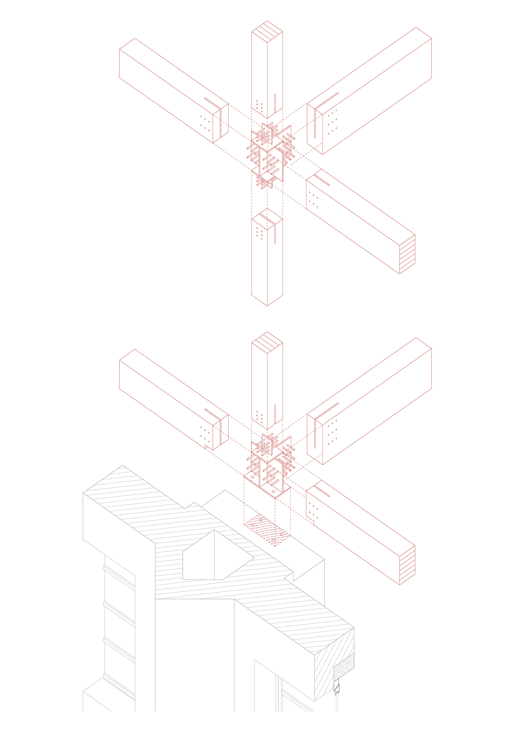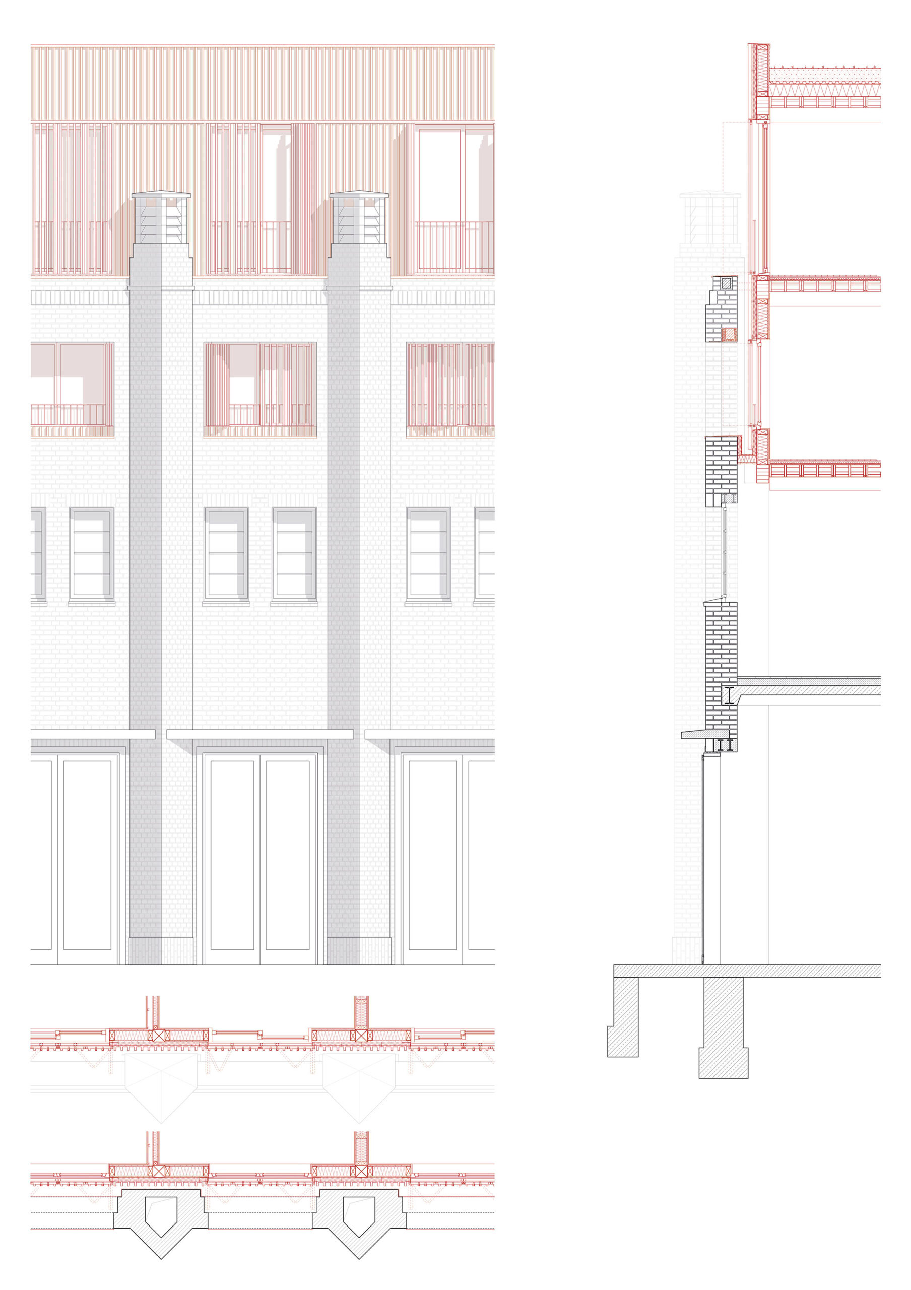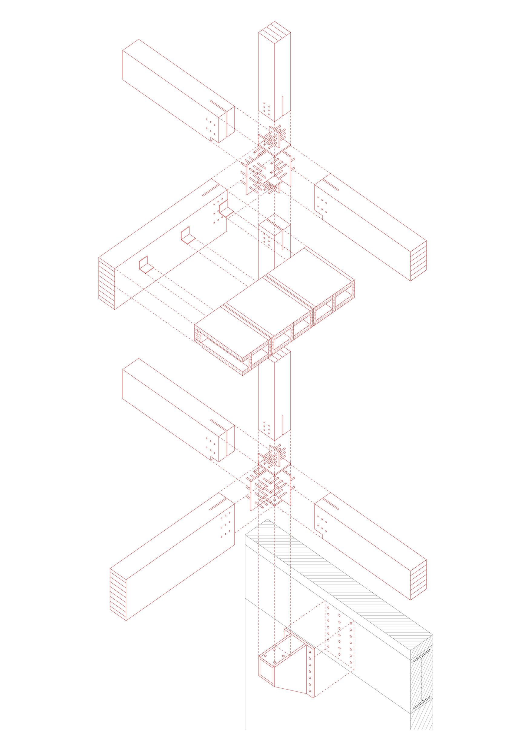 Der Bestand gliedert sich in zwei Geschosse. Das Erdgeschoss ist geprägt durch kleine Zellenstrukturen entlang der Längsfassaden und einer zentralen großen Halle. Das Obergeschoss, besteht aus zwei längs angeordneten Hallen. Ein leichter neuer Baukörper wird im Obergeschoss eingesetzt, welcher über zwei Geschosse Wohnungen in verschiedensten Konfigurationen anbietet. Hierfür werden die bestehenden Konsolen eines Ehemaligen Schwerlastkrans als Auflagerpunkte genutzt.