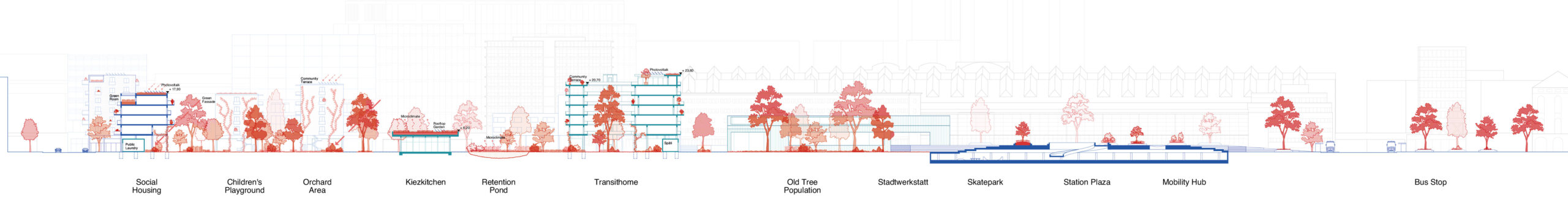 Ein Übergangswohnheim, für Menschen in Not, eine Kiez-Küche als zentraler Treffpunkt und bezahlbarer Wohnraum ergänzen das Quartier.