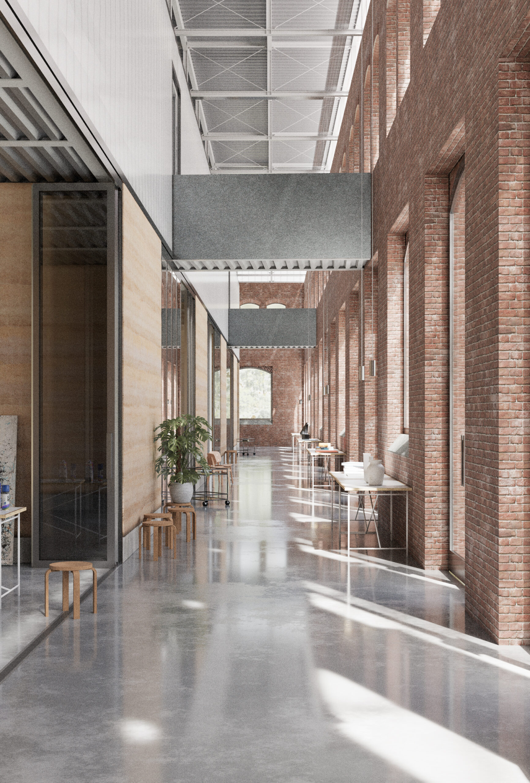 Mit der Transformation der ehemaligen Fabrik soll ein Ort der kreativen Entfaltung, des Ausprobierens und der Bildung entstehen, wobei eine niedrigschwellige Zugänglichkeit zu Kunst, Handwerk und Kultur ermöglicht werden soll. Hierfür wird das gesamte Fabrikareal programmatisch neu gedacht. Die historische Bausubstanz wird erhalten und durch bauliche Interventionen im Bestand ergänzt. Die primären Nutzungsbereiche wie Werkstätten, Veranstaltungsbereiche, Ateliers und informelle Treffpunkte befinden sich in den großen Hallen.
